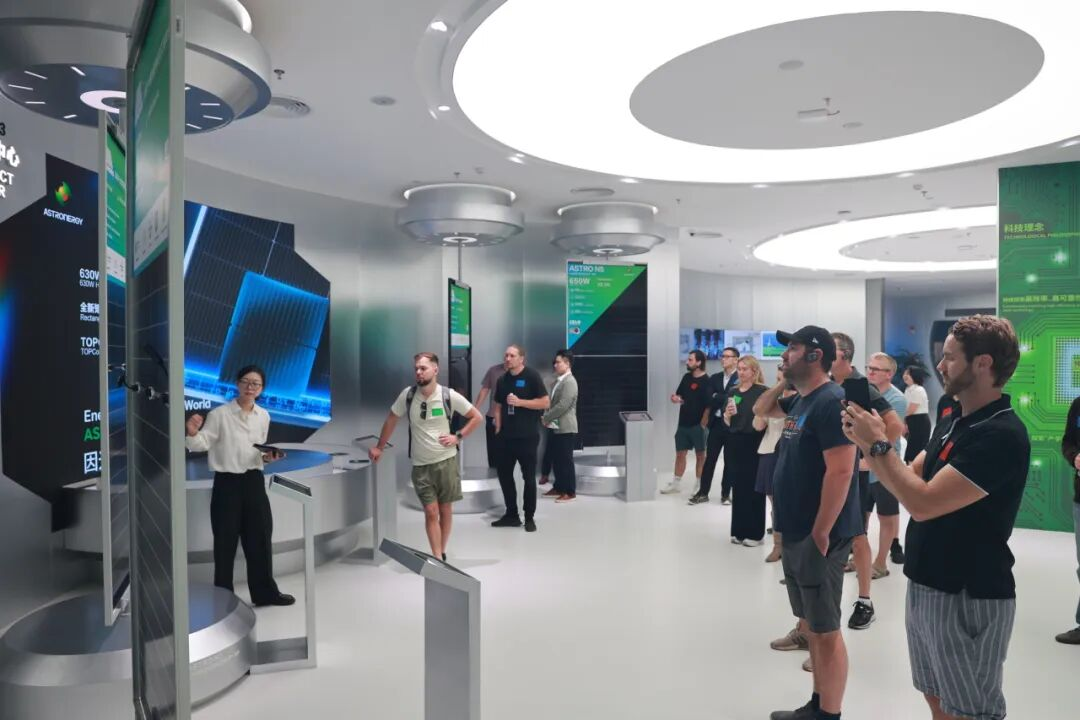 随后的参观环节中,嘉宾们先后走进正泰新能品牌展厅、电池和组件智能生产线以及光伏检测中心,全面了解了公司从硅材料到高效组件的全产业链布局,以及ASTRO N系列产品的技术优势与应用场景。在生产车间内,精准操作的机械臂、实时监控的智能质检系统、有序运转的AGV物流机器人以及高度自动化的生产线,充分展现了正泰新能在数字化制造与精益管理方面的领先水平,给现场嘉宾留下了深刻印象。