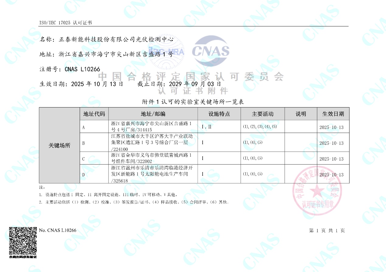 此前,正泰新能光伏检测中心已获得CNAS检测实验室认可资质,此次校准资质的加持,进一步体现了正泰新能对技术力的持续追求,也折射出公司在产品品控方面的高标准要求。