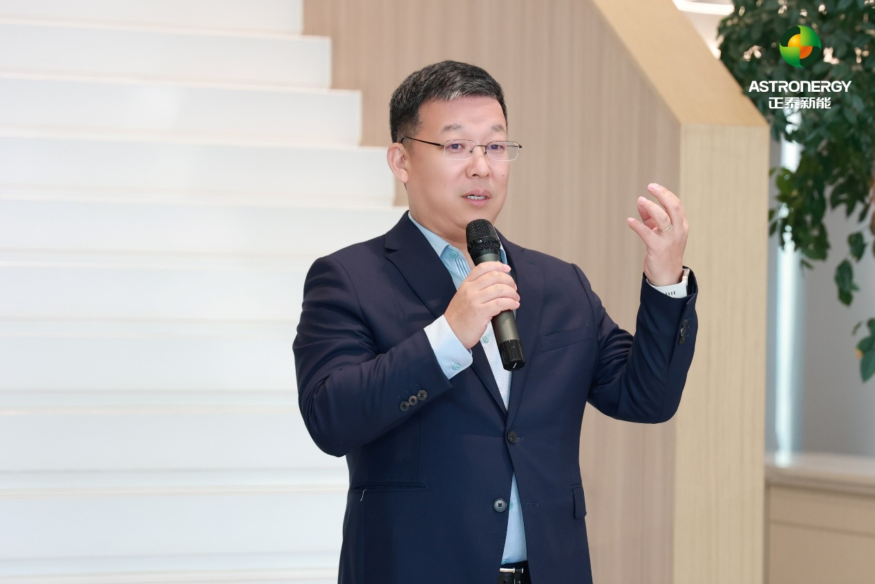 活动伊始,正泰新能首席市场营销官张炜向远道而来的合作伙伴表示由衷欢迎。他在致辞中指出,在全球共同迈向碳中和的背景下,中东地区已成为能源转型进程中最具活力与潜力的市场之一。此次活动不仅是参观交流,更是一场面向未来的深度对话。张炜表示,正泰新能将依托领先的智能制造能力、稳健的供应链体系和全面的产品解决方案,与合作伙伴携手共建中东地区的新能源生态,为当地可持续发展注入绿色动能。