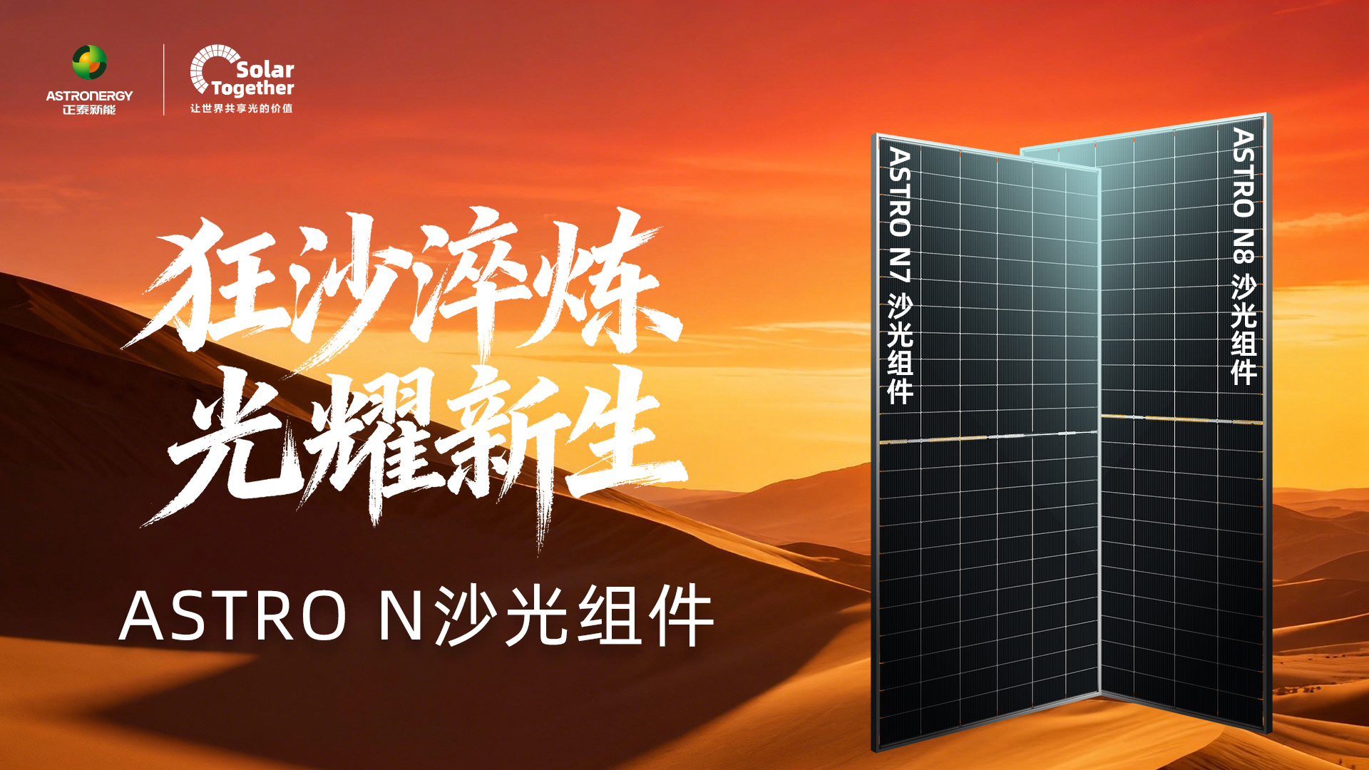 为此,正泰新能专为沙漠严苛环境打造了ASTRO N沙光组件,涵盖ASTRO N7和ASTRO N8系列,在保持 主流高功率的同时,创新性引入自清洁涂层玻璃、高载荷钢边框、膜层优化电池等技术工艺,确保在沙戈荒环境中持久高效运行。