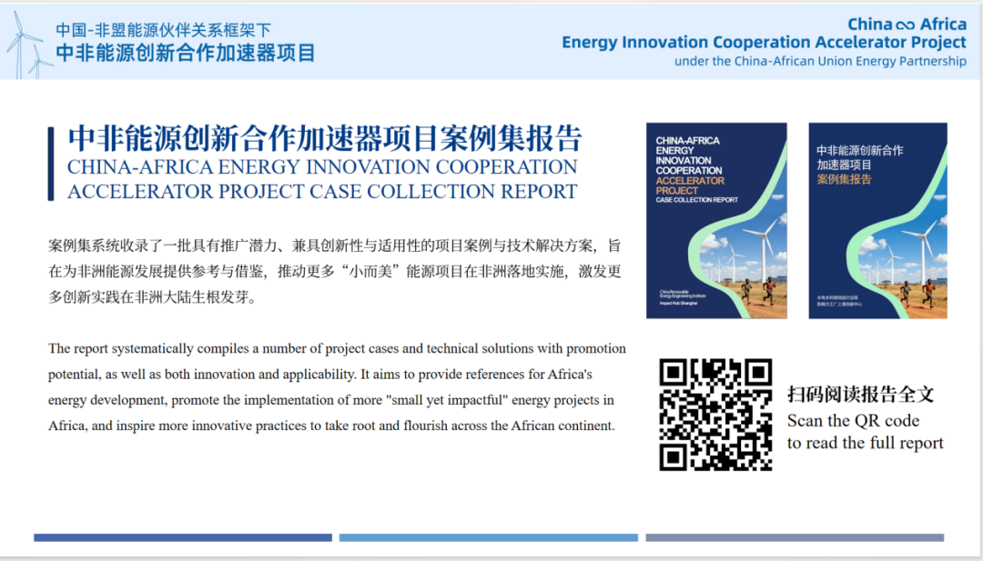 加速器项目由水电总院在中国—非盟能源伙伴关系框架下发起,致力于通过实际探索与尝试,推动中非清洁能源领域“小而美”项目合作。通过征集遴选、能力建设与资源对接等方式,一批惠民生、接地气的能源创新方案正快速进入中非合作视野。
