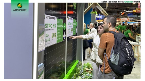 En cuanto a los productos destacados, Astronergy está exhibiendo sus módulos insignia ASTRO N7 y ASTRO N5, ambos equipados con tecnología TOPCon tipo n, con eficiencias de 23,3 % y 23,4 %, respectivamente.