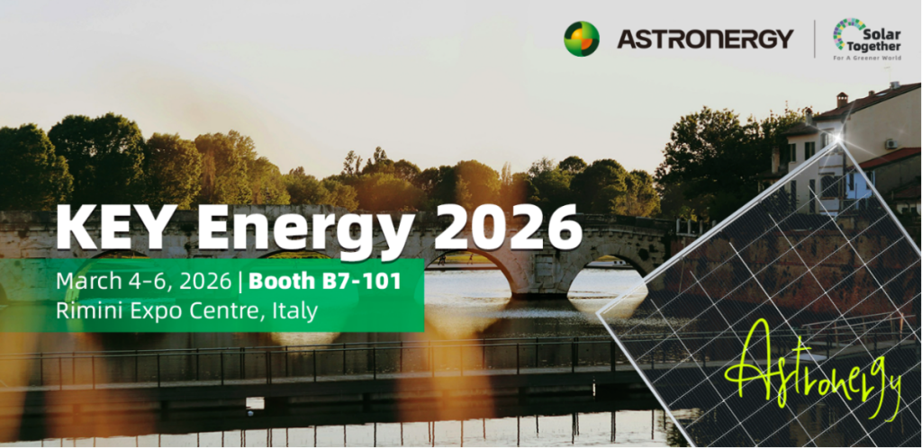 Astronergy participó en KEY 2026 en Rimini como expositora, presentando al mercado solar europeo sus más recientes tecnologías fotovoltaicas. Con un stand de más de 120 m², la compañía destacó algunos de sus módulos fotovoltaicos de mejor rendimiento actualmente disponibles en Europa, despertando un fuerte interés tanto de clientes ya consolidados de Astronergy como de nuevos socios potenciales enfocados en proyectos utility-scale y C&I.