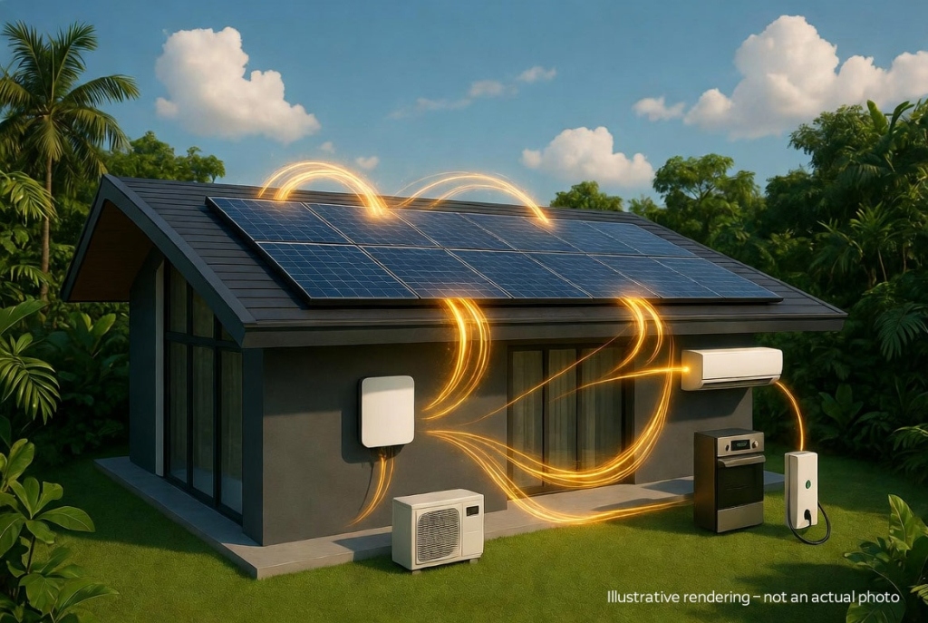 Malasia cuenta con abundantes recursos solares, pero los patrones de demanda residencial y las condiciones climáticas pueden hacer que el diseño del sistema sea más complejo. En viviendas más grandes, el consumo eléctrico durante el día suele estar impulsado por cargas de refrigeración, electrodomésticos y dispositivos de hogar inteligente. La incorporación de un vehículo eléctrico al hogar incrementa aún más la demanda energética, especialmente si la carga se realiza en casa. Al mismo tiempo, la producción solar puede variar a lo largo del día debido a la nubosidad, la lluvia y la irradiación desigual.